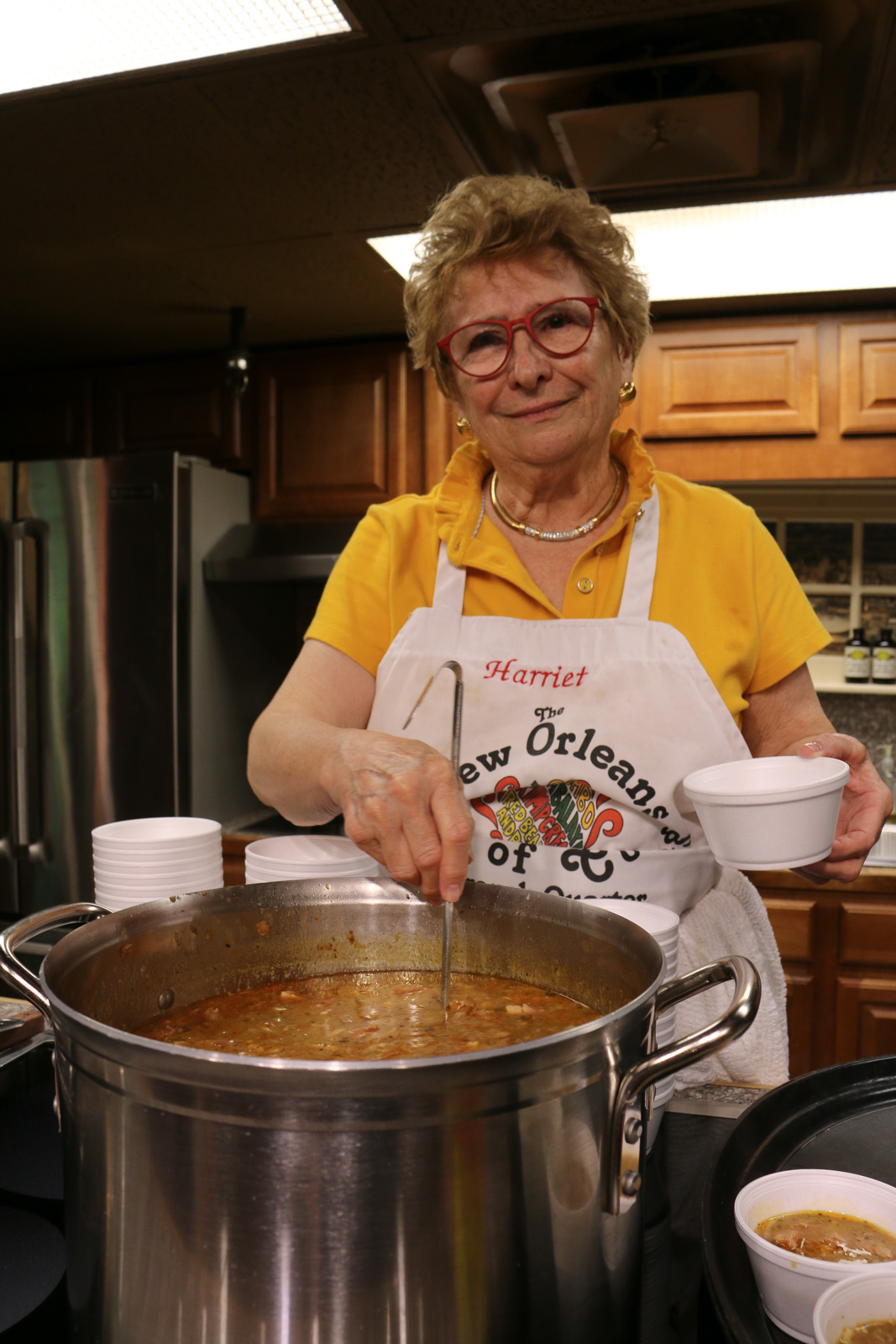 Nicht nur die Musik macht New Orleans bis heute einzigartig. Louisiana als Heimat der französischsprachigen Arkadier, ist auch kulinarisch einer der Schmelztiegel der USA. In Kochschulen wie der New Orleans School of Cooking kann man regionalen Köchen bei der Zubereitung des Gumbo zuschauen. „Das ist ein Eintopf und typisch für Louisiana“, sagt Harriet Robin (73), die an diesem Tag Schauköchin ist. Meistens wird er mit Shrimp zubereitet, für den Louisiana ebenfalls berühmt ist. „Aber eigentlich kann man da alles reinwerfen. Ich kenne Leute, die kochen Eichhörnchen-Gumbo oder Frosch-Gumbo“, erzählt Harriet Robin. Die Zubereitungsweise kommt von den Arkadiern und die Zutaten aus der Gegend, weil man die ursprünglich europäischen Gerichte mit lokalen Zutaten nachkochen musste und manchmal gab es eben nur Eichhörnchen oder Frösche“, sagt sie. Immerhin schränkt sie das alles dann jedoch wieder ein. „Nur eines darf niemals an den Gumbo: Tomaten“, sagt sie. Echter Gumbo müsse braun sein. „Sonst ist ihn kein echter Arkadier.“