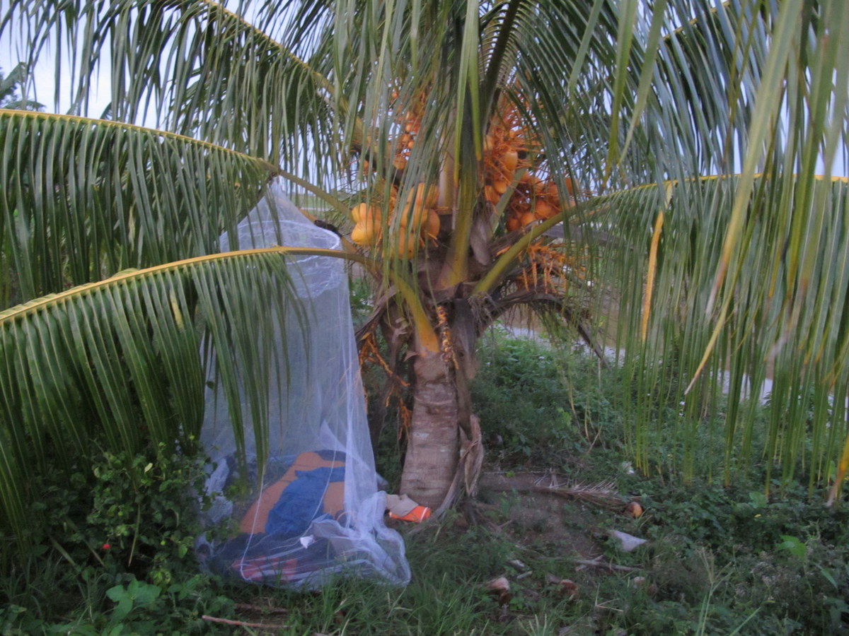Eine Nacht verbringe ich mitten im Nichts – zwischen Reisfeld, Bananenplantage und Kanälen. Es ist eine der schrecklichsten Nächte meines Lebens. Und dazu eine sehr blutreiche. Ich töte in meinem Moskitonetz 252 Mücken. Noch einmal so viele stechen mich. Am Ende schalte ich die Kopflampe aus und ergebe mich meinem Schicksal.