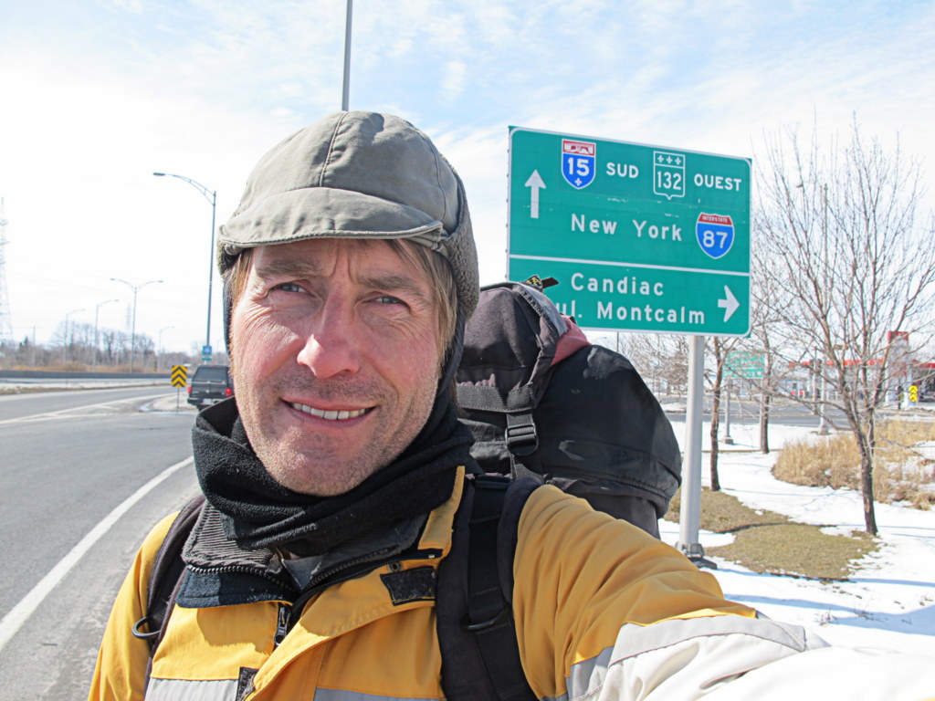 Aus großen Städten herauszutrampen ist eine Herausforderung. Es gelingt mir immer wieder, aber es kostet Zeit, Nerven und man braucht Intuition, Erfahrung und Kreativität, um Hindernisse, wie Polizei, Autobahnkreuze und Innenstadtverkehr zu überwinden. Aber es ist gelungen. Als ich zum ersten Mal das Schild in Richtung New York gelesen habe, war es mir jedenfalls wohler. Leider scheint mich der Schnee zu verfolgen. Schöne Bilder aber leider kalte Füße.