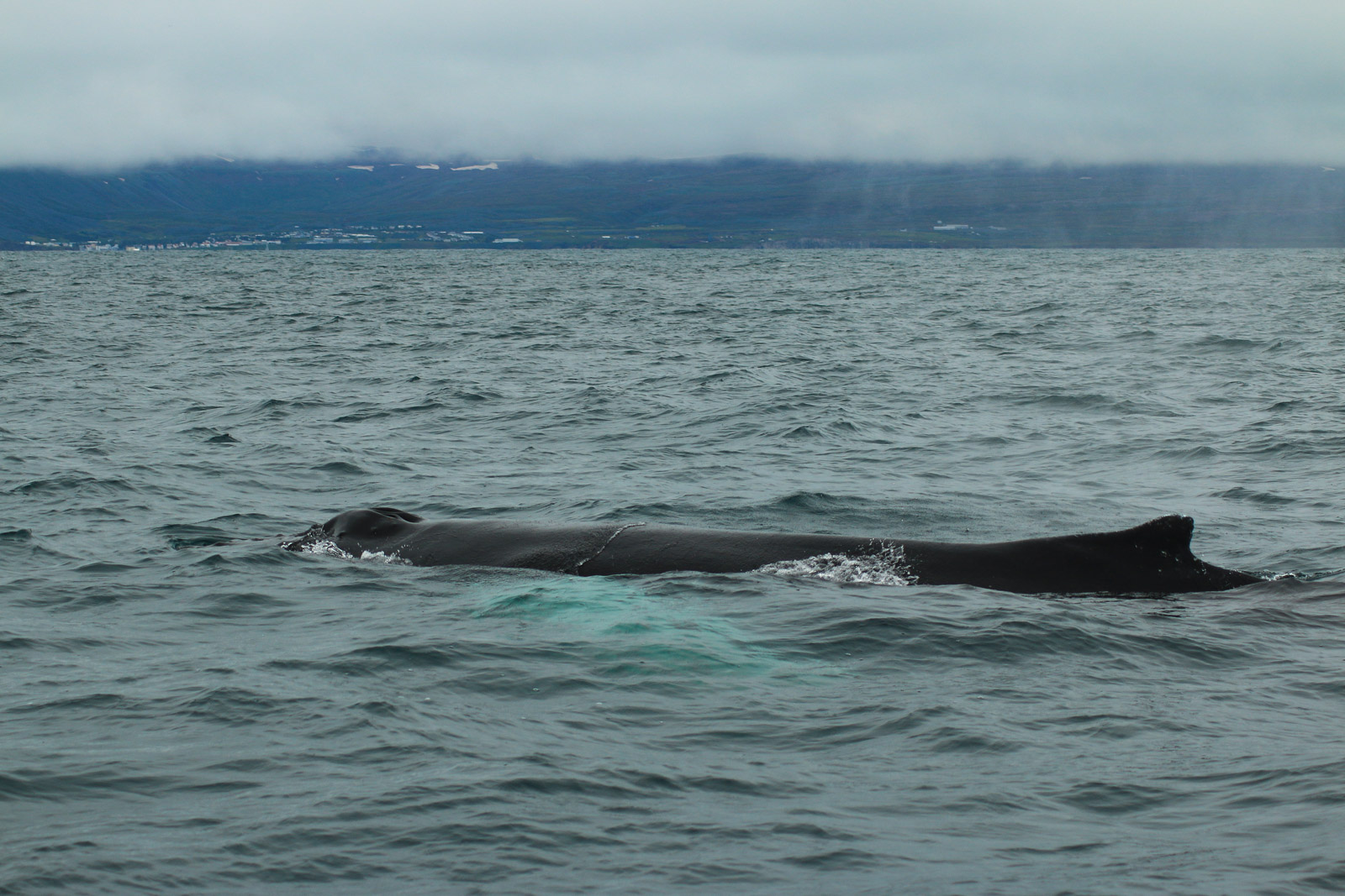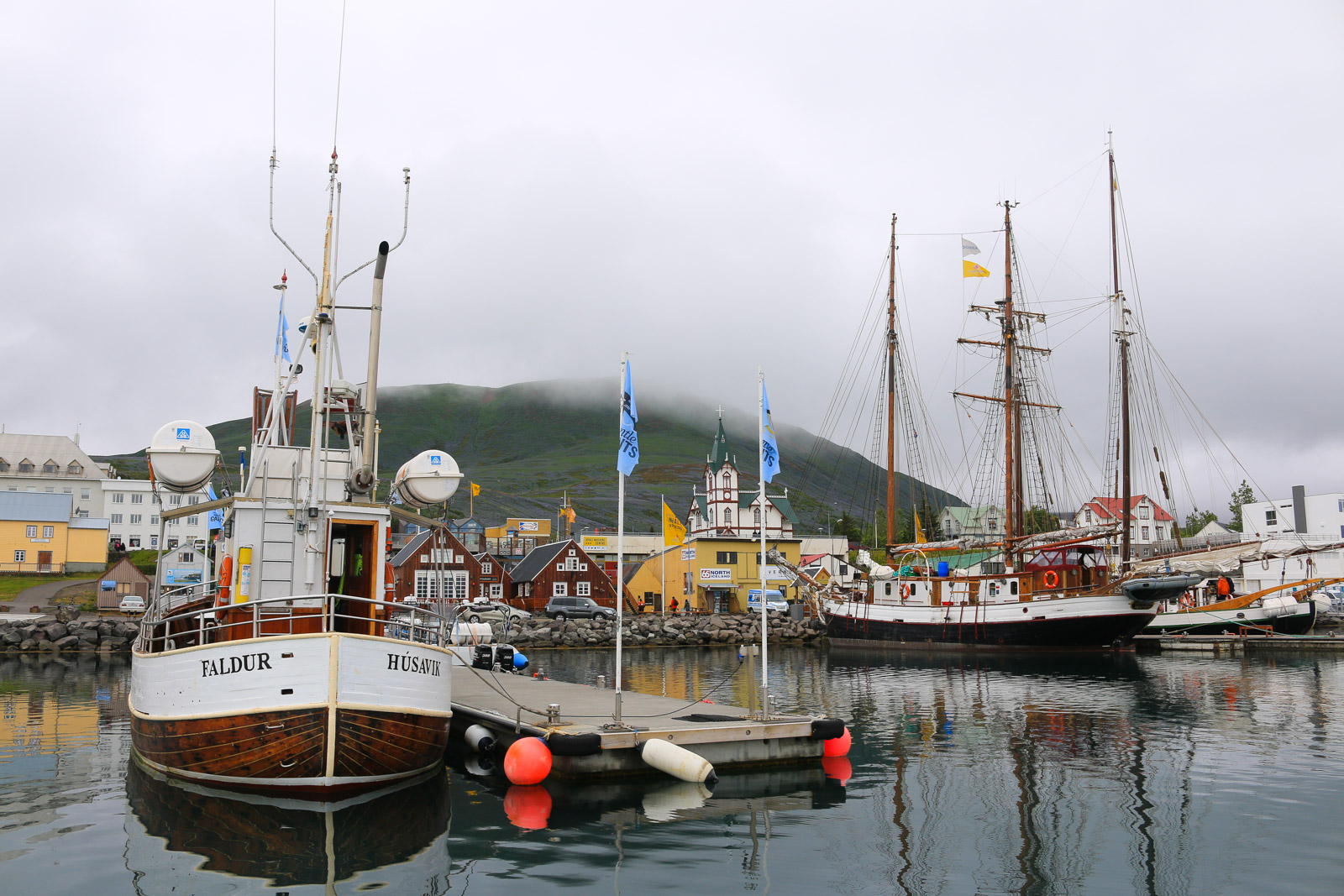 Und wo kann man das besser als in Island? Die Hafenstadt Husavik gilt als Hauptstadt des Whale Watching. „Die Wale lieben die Bucht, wegen ihres reichhaltigen Nahrungsangebots“, erklärt mir Belen, Guide bei meiner Bootstour und studierte Meeresbiologin aus Madrid. Und das beste: Wale sind fast immer zu sehen. Anders als das Wetter ändert sich die Sichtungsquote von Walen auf den Fahrten in der Bucht von Husavik kaum. Mit 98-prozentiger Wahrscheinlichkeit gibt es in der Bucht von Husavik einen Wal zu sehen. Allerdings muss man fairerweise sagen, dass das auch nur ein kurzes Ausblasen oder eine Schwanzspitze sein kann. Meistens ist es aber mehr. Schon Elsa, meine Couchsurfing-Gastgeberin in Akureyri, hatte mir berichtet, dass es wohl nur ungefähr 3 Fahrten pro Jahr gäbe, an denen man keine Wale sehe. Ihre Schwester hat bei ihrer Hochzeit eine der Fahrten erwischt.